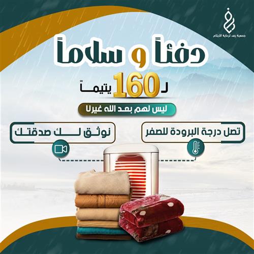 هناك 160 يتيم إن لم نكسهم وندفئهم سيتحول شتاؤهم إلى كرب عظيم.