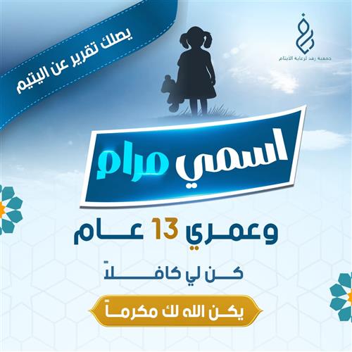 اسمها "مرام" وكفالتها سر البركة والغنى بإذن الله، ساهم بما تستطيع.
